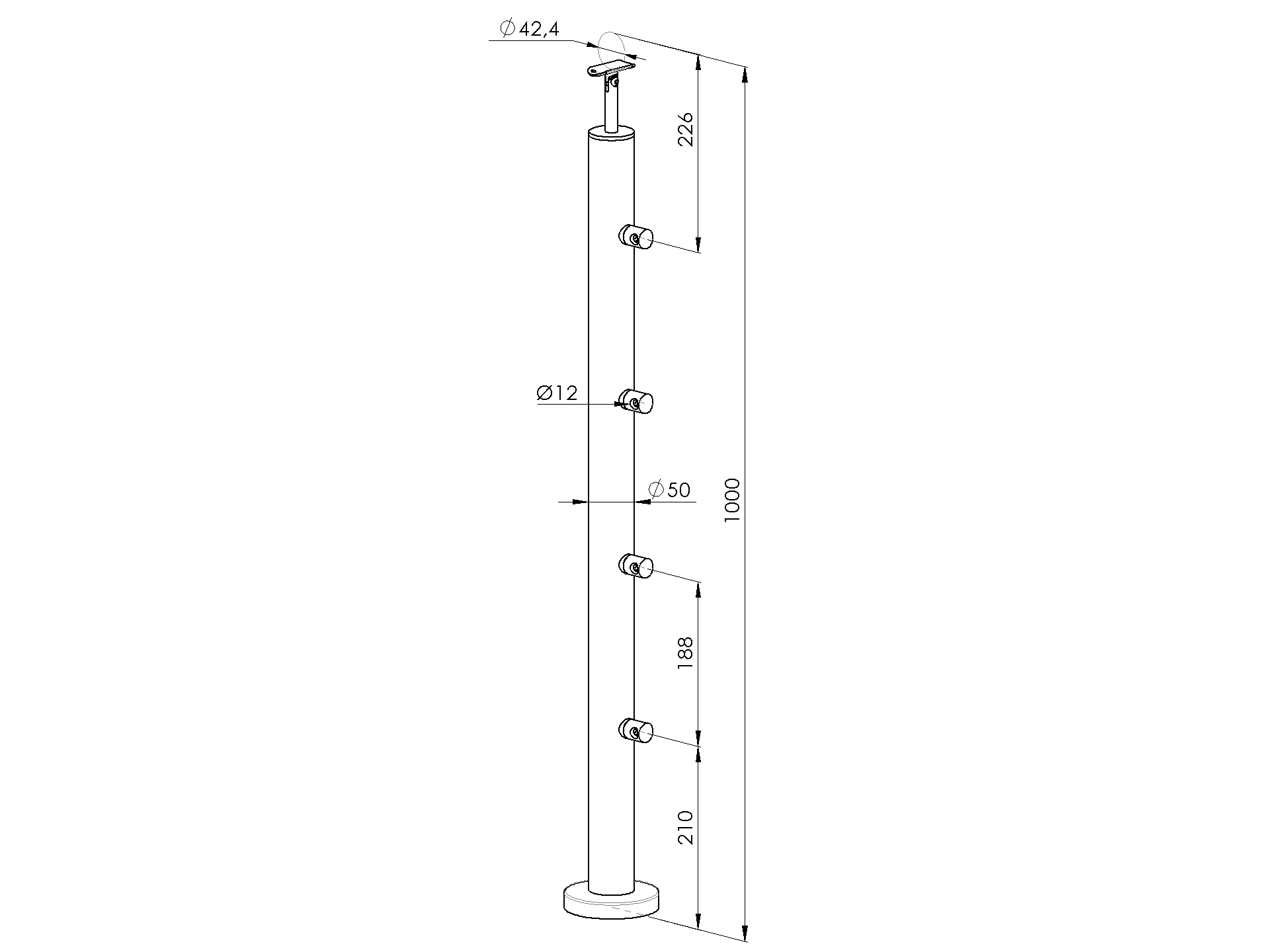 Sloupek-DUB D50/5x12mm, v=100cm, VK-schodiště WD-VS100-5D12