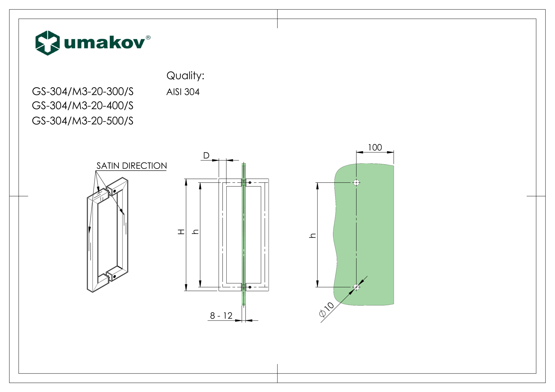 Madlo - broušený nerez AISI304, K320 GS-304/M3-20-400/S
