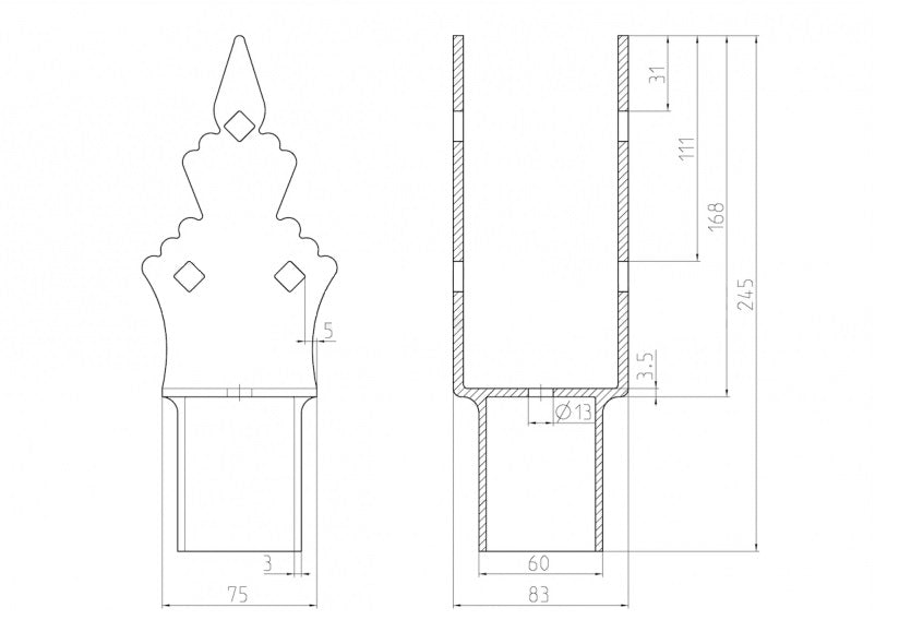 Objímka koncová na JP sloupek Zn YAF01ZN02-60X40/0000-M