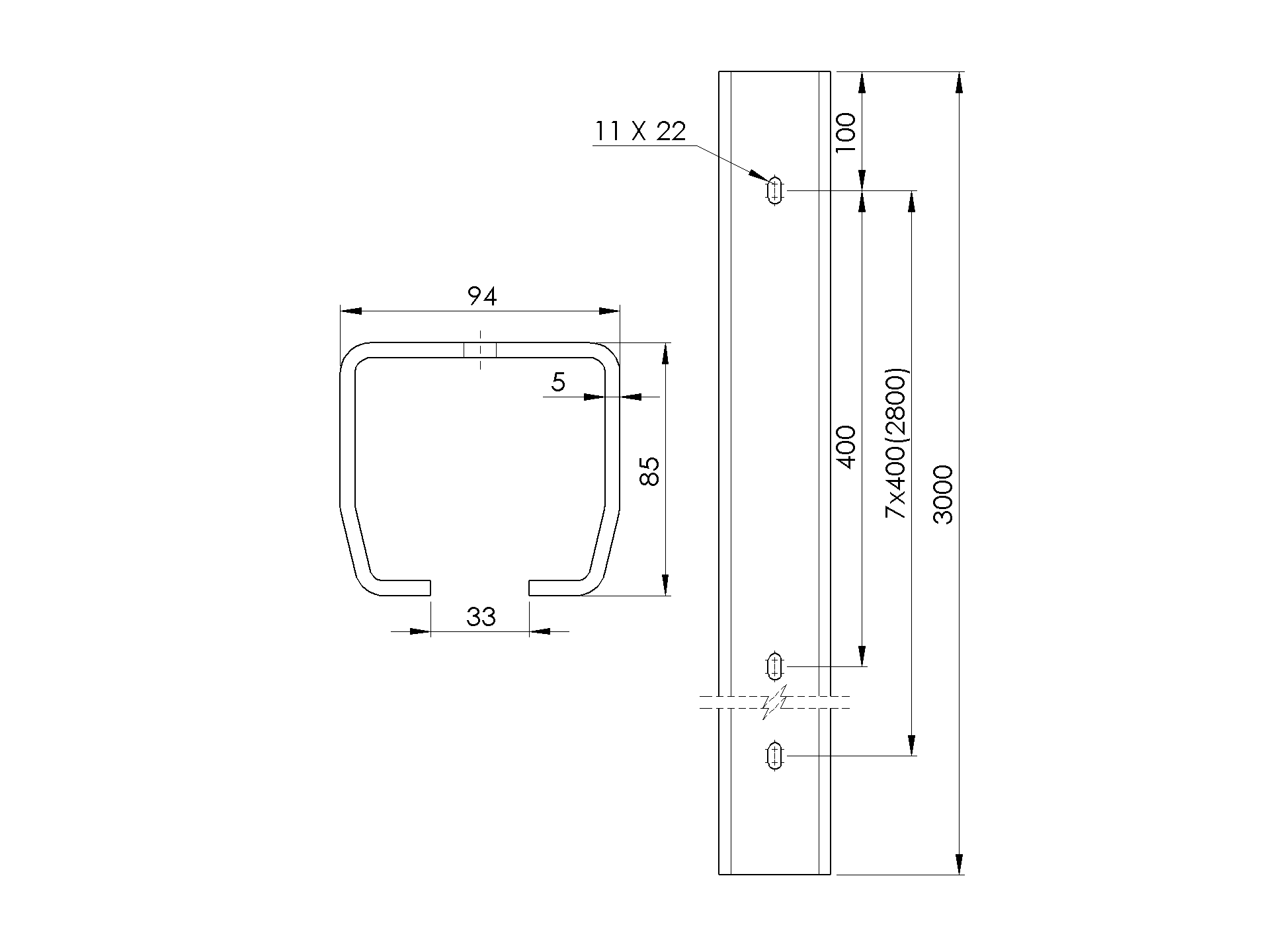 Profil vodící s otvory Zn, 94x85x5mm, L3m H/02-94x85-Zn-D-3000
