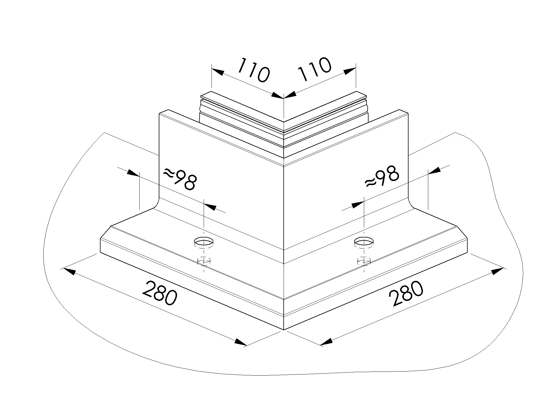 Kotvění vrchní - sklo hliník AL/0018-S-E-90-IN