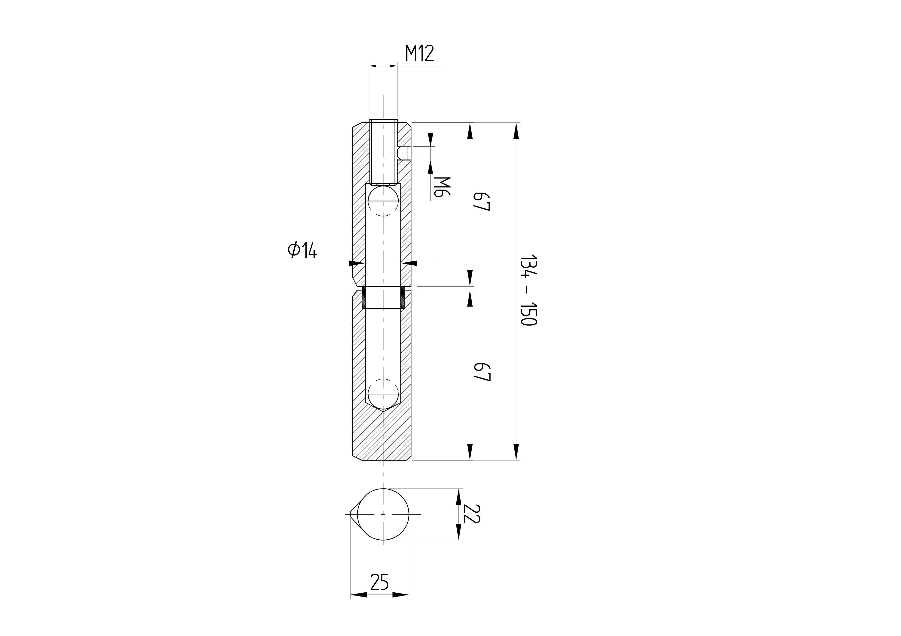 Weldable hinge D22, L134-150mm D4/11-150RD