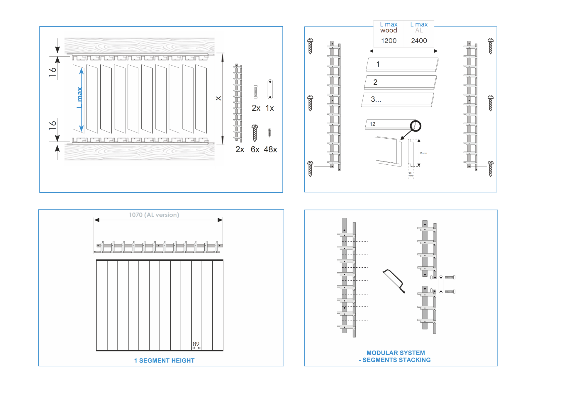Movable aluminum system – vertical, louvered – pair (left + right) FG/SWS-V-1090-AL-R8017