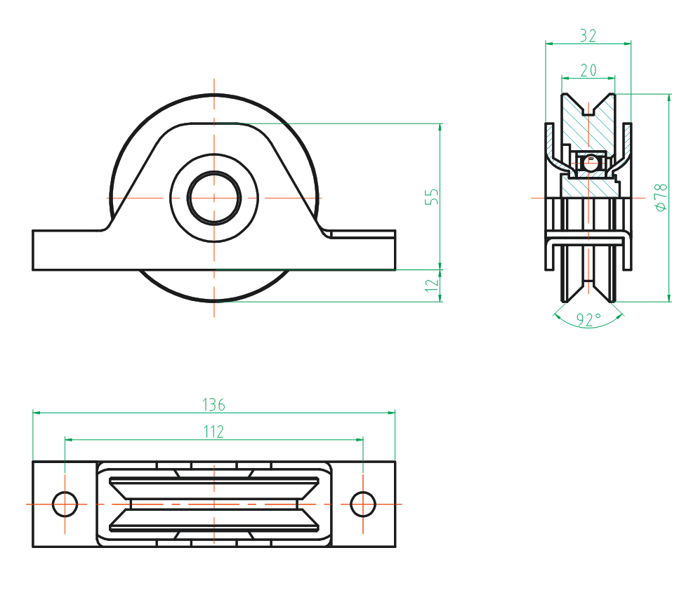 Internal box section wheel for slider - V, Zn,D100 H/38V-100