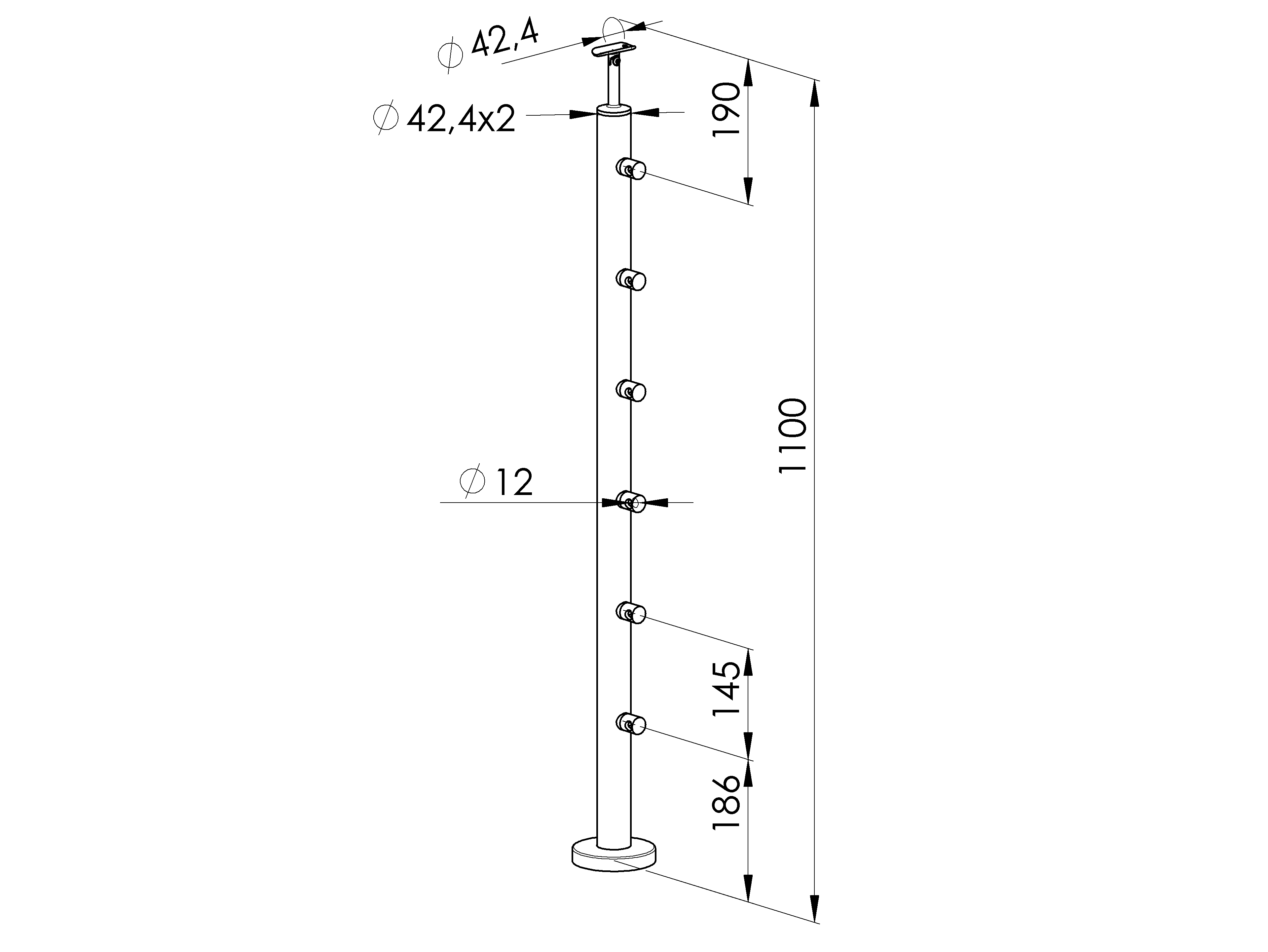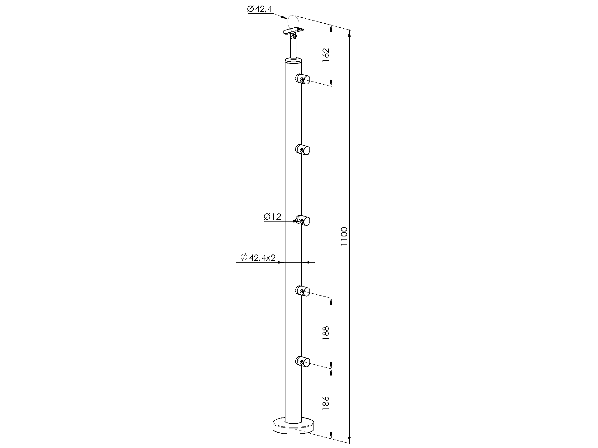 Nerezový sloupek AISI304, D42,4/5xd12/H1100mm A-VR110-5D12