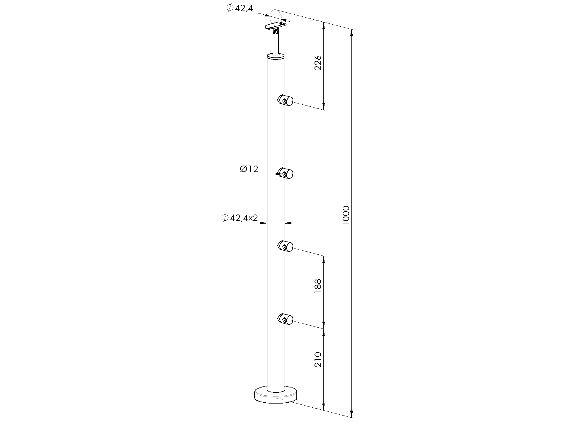 Nerezový sloupek AISI316, D42,4/5xd12/H1000mm A14-VR100-5D12