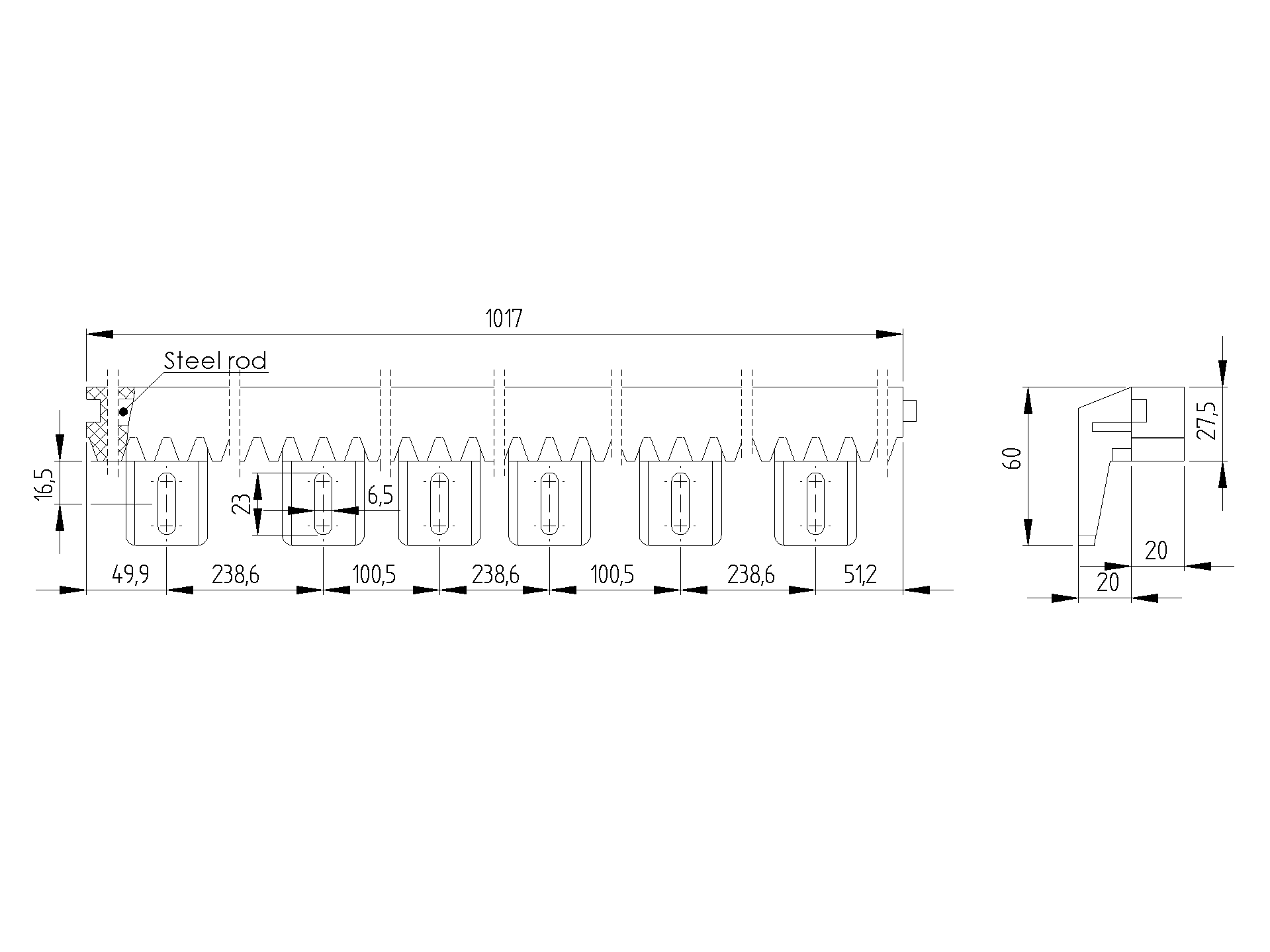 Hřeben plastový PVC+Fe,27x20mm,L1m,max 1200kg H/01PVC-S-BS