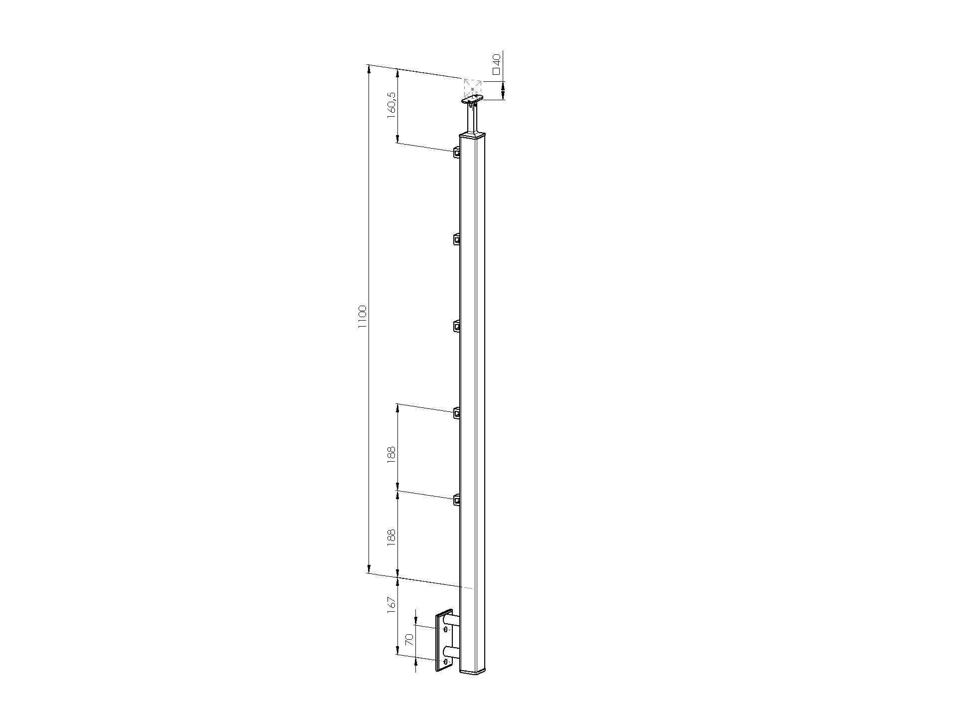 Sloupek antikor, BK-rovné AISI316-40x40/H1000mm AJP14-VER-BR100