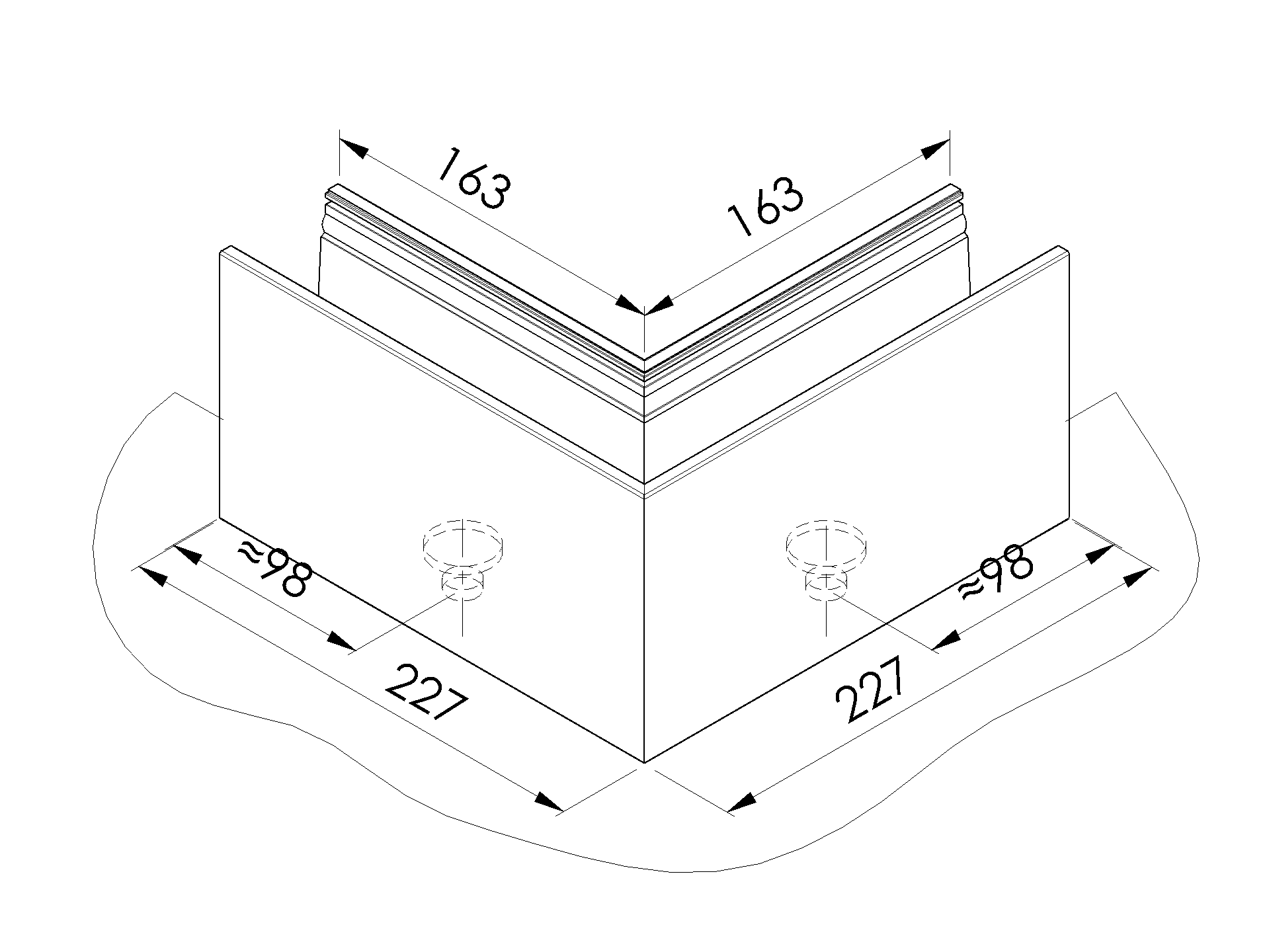 Kotvění vrchní - sklo hliník AL/ELOX/Satin L195mm, AL/0004-ECO-S-E-90-OUT