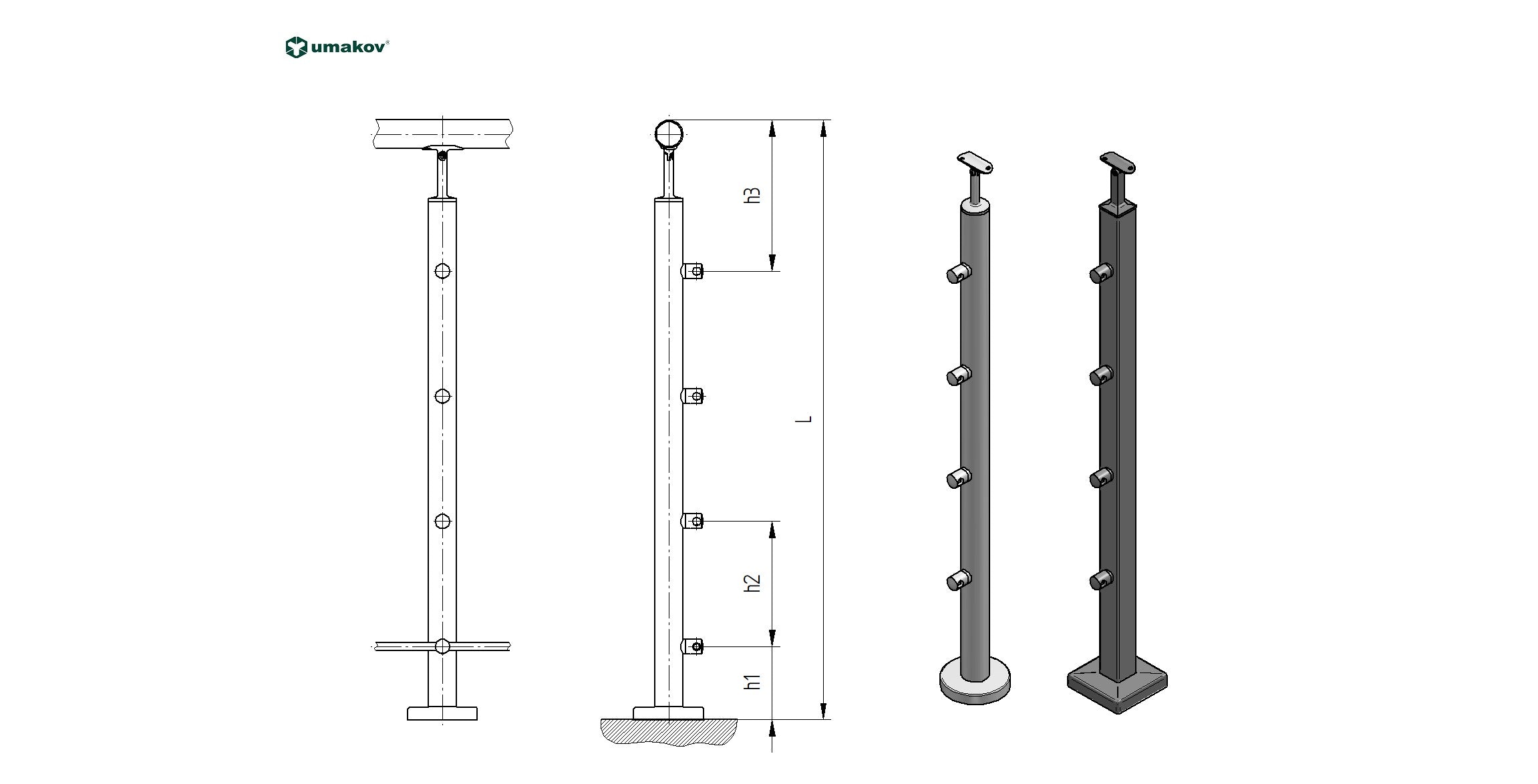 Sloupek zábradlí drěvo buk nerez výplňe AISI304 WB-VR90-4D12