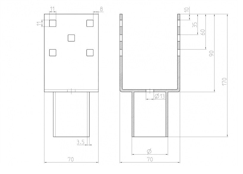 Nástavec na zemní vrut Zn "U" 70x70x90x60mm YFB01ZN070X070X090X60