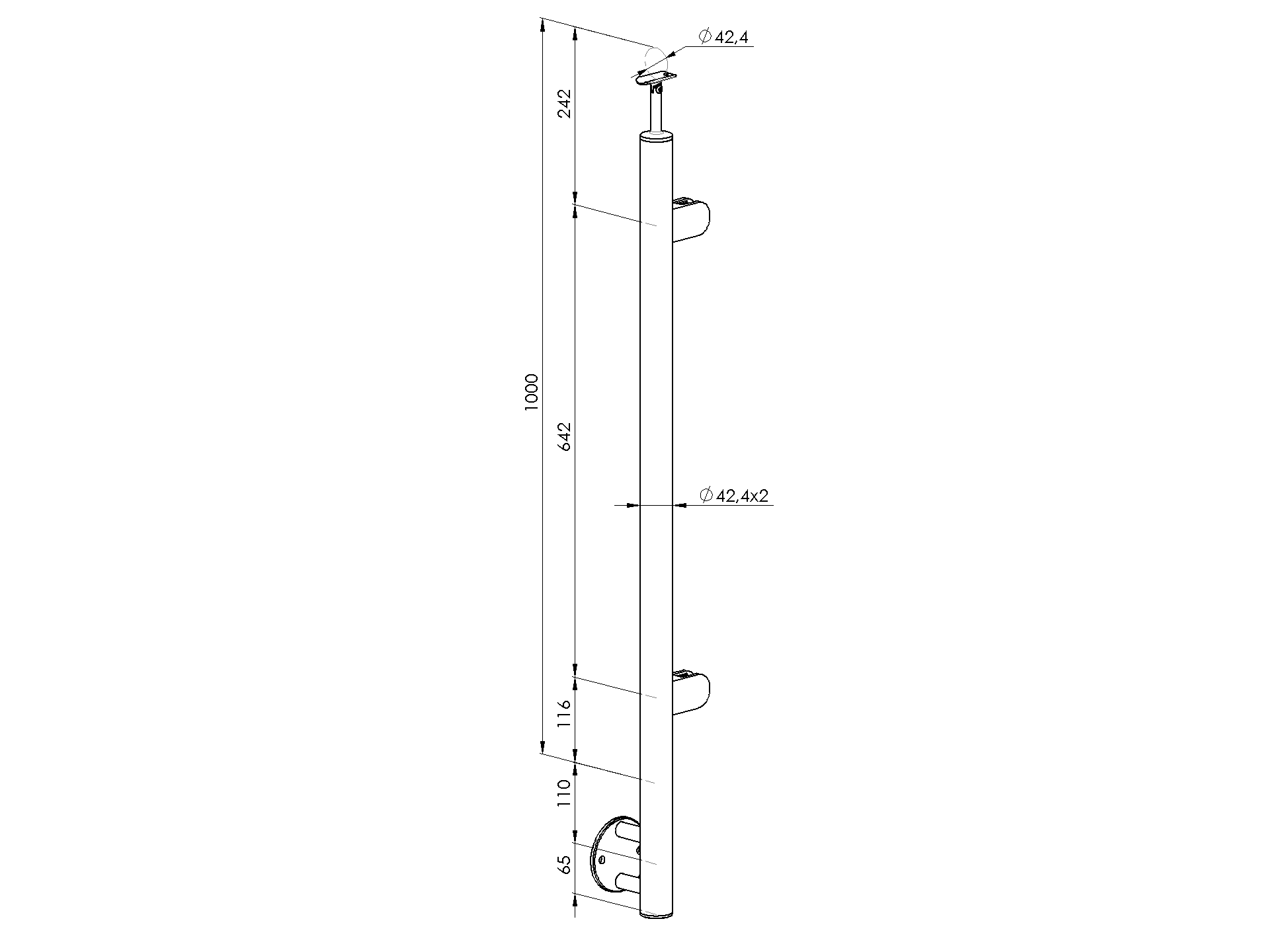 Nerezový sloupek, rovné + platnička A-BR100-2GR-250P