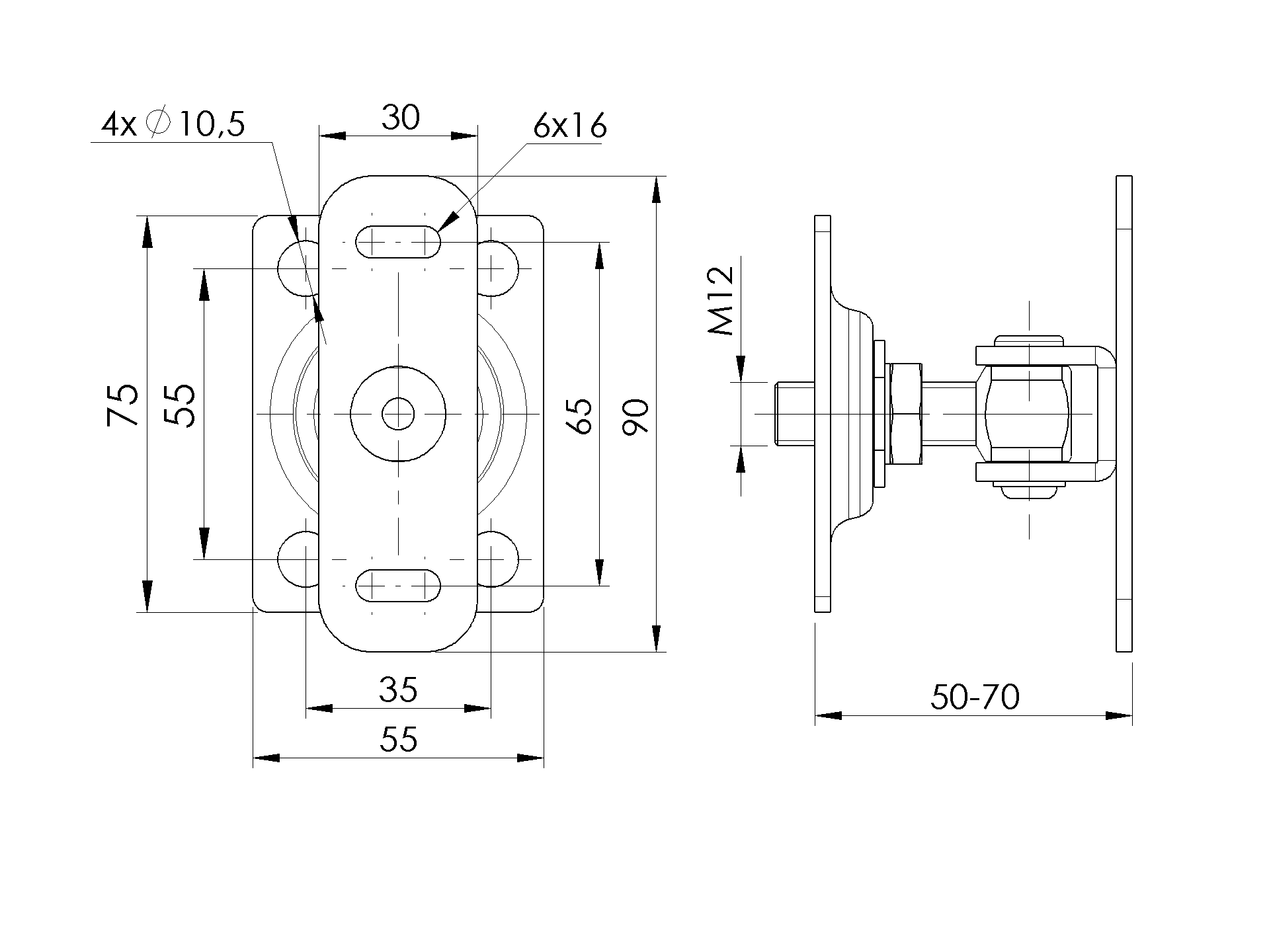 Pant INOX M12, 55x75mm D8/53-M12-K