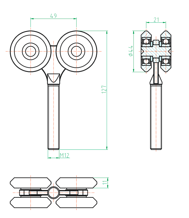 Vozík závěsný Zn, profile 42x54mm H/07-42x54