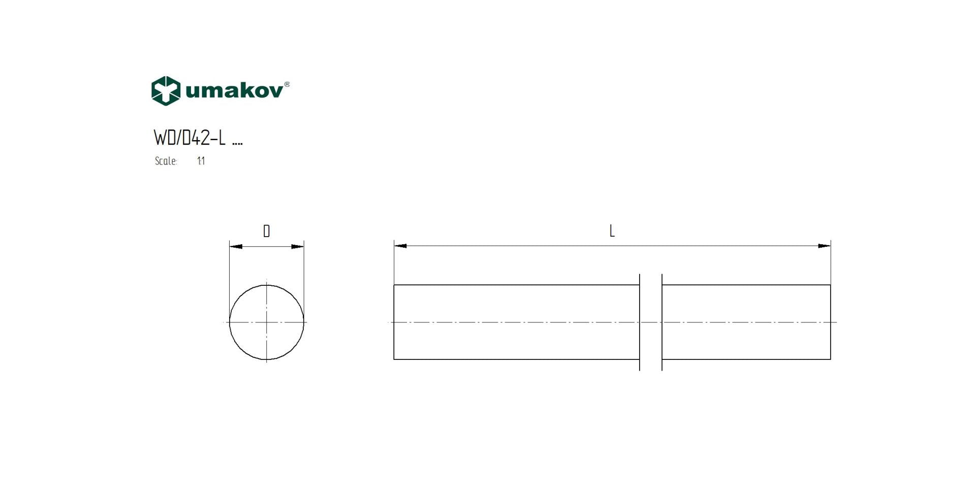 Dřevěné madlo DUB WD/D42-L3000
