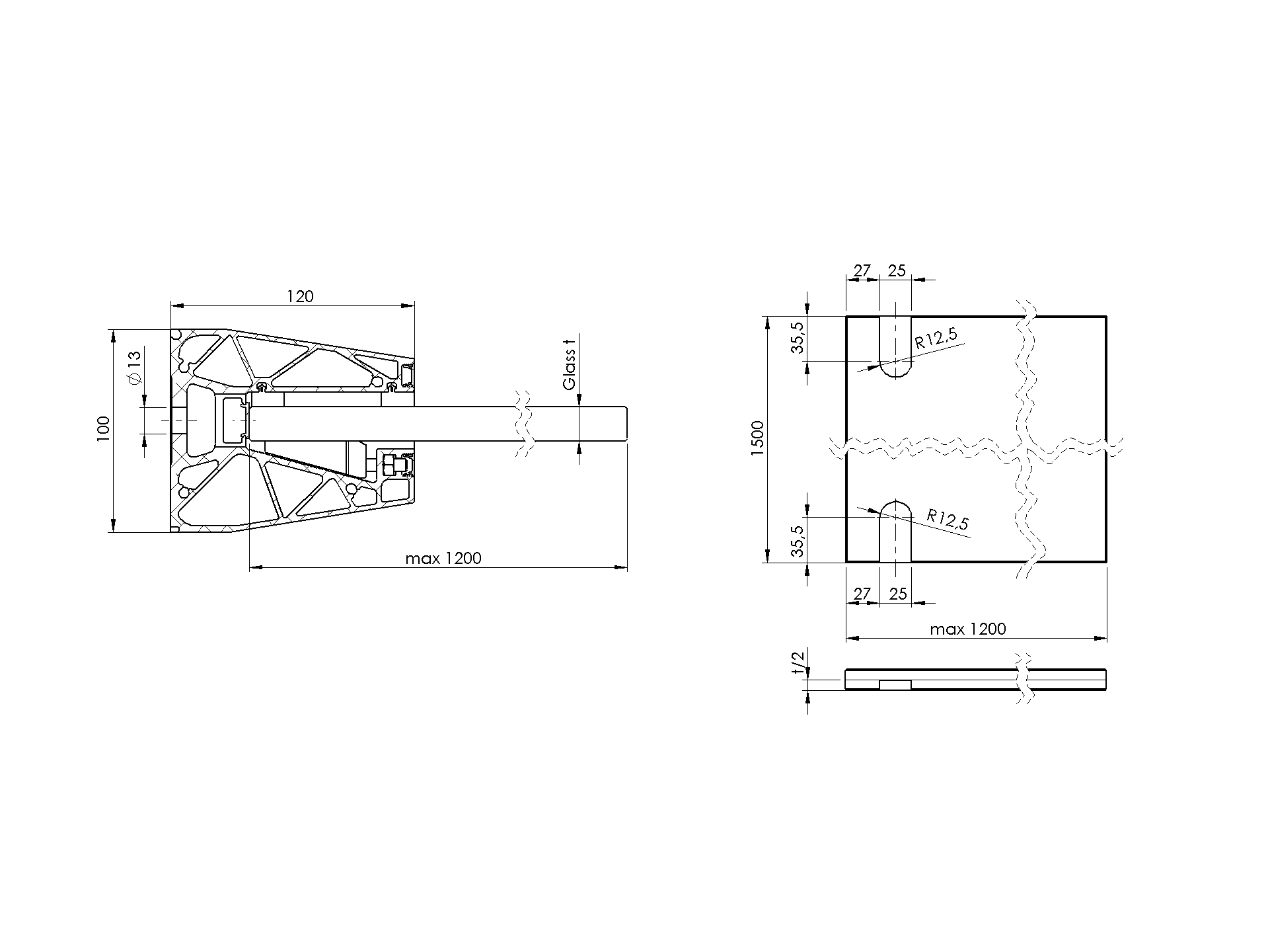 Prosklená stříška hliník profil AL/PR7-1500-N-E-SET1