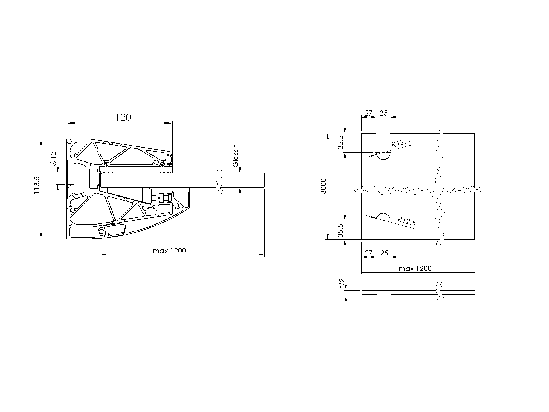 Prosklená stříška hliník profil AL/PR7-3000-N-E-SET1