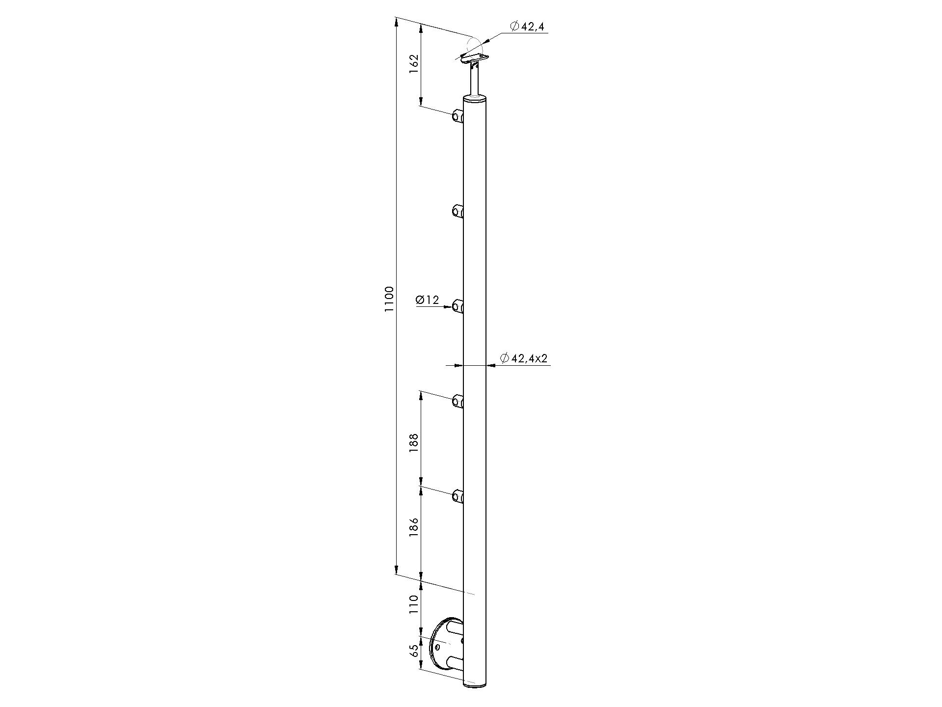 Sloupek nerezový, BK-schodište AISI304, 40x40x2/5x AJP-BS100-5D12