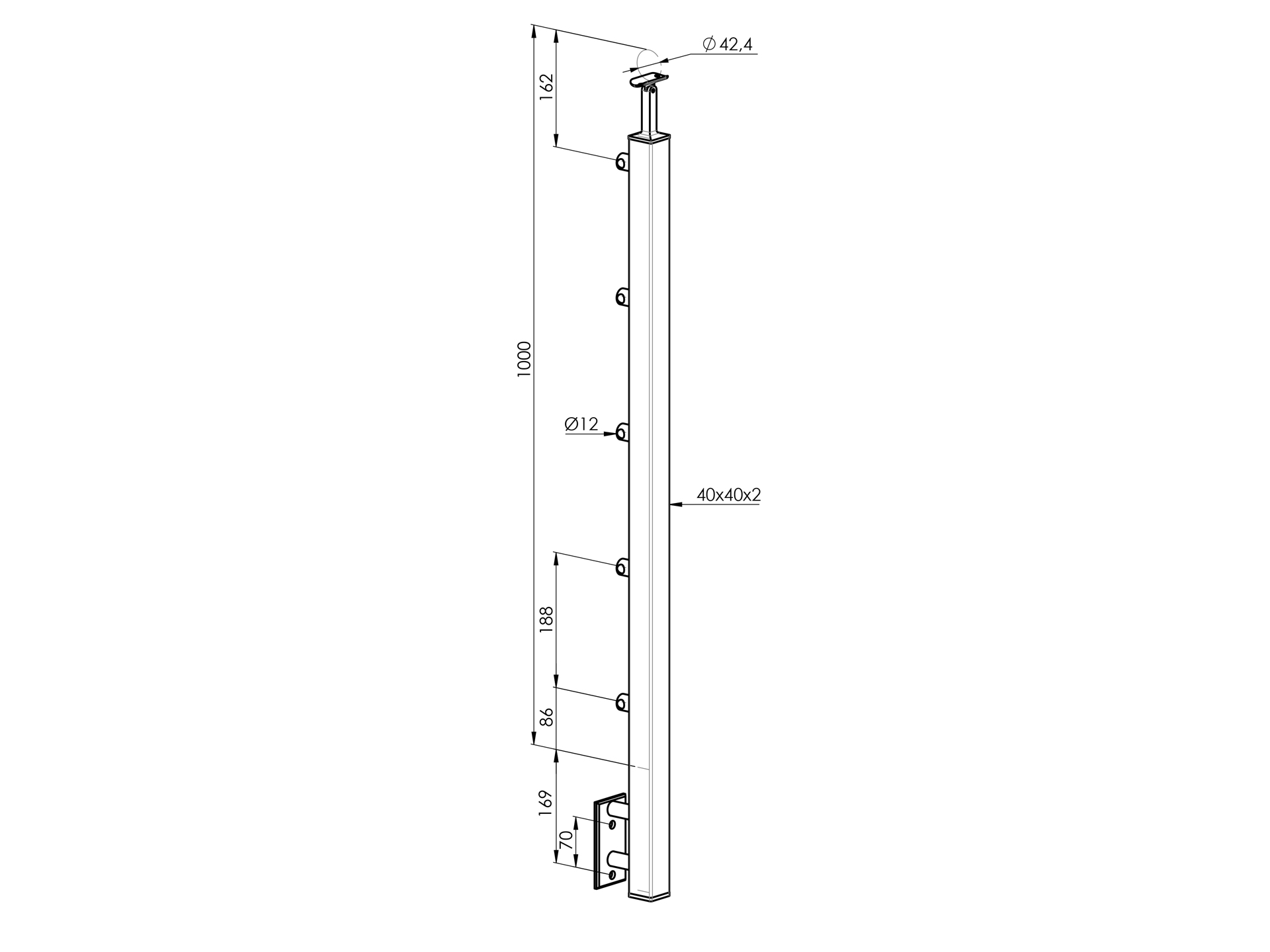 Sloupek antikorový , Boční kotvění - rovné AISI304 AJP-BR100-5D12