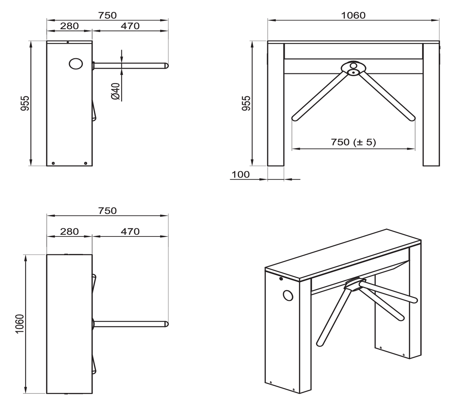 - Kapacita průchodu: Přibližně 25-46 osob za minutu pro jednostranný turniket (dvojnásobek pro oboustranný)