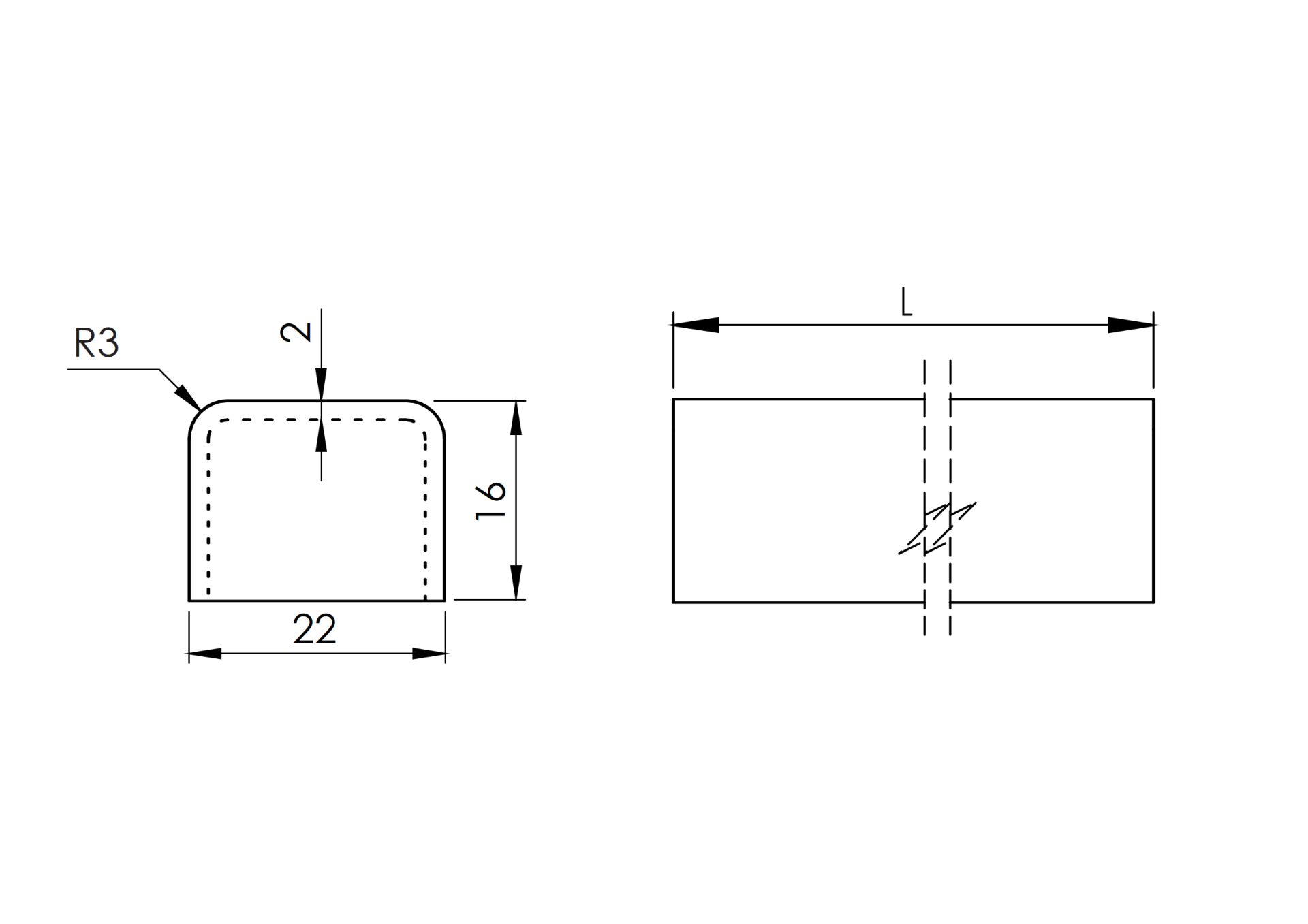 Materiál: Nerez AISI 304, Povrchová úprava: Brus, Glass t: 16-17,52, L: 200, R: 3