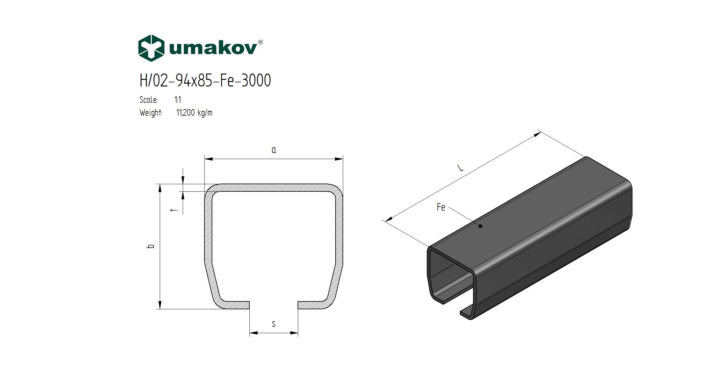 Vodíci profil, kolejnice posuvné samonosné brány F H/02-94x85-Fe-3000