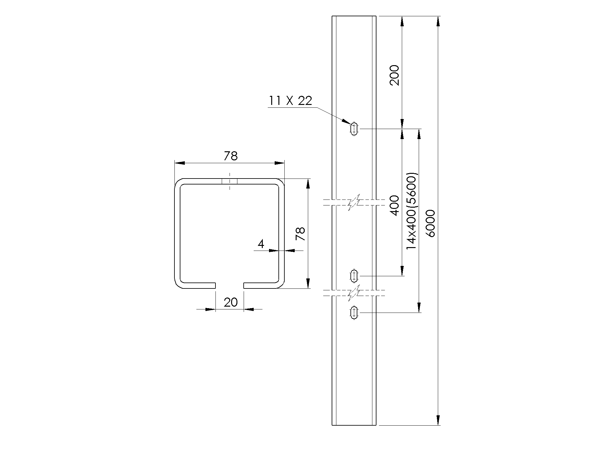 Profil vodící s otvory Zn, 78x78x4mm, L6m H/02-80x80-Zn-D-6000