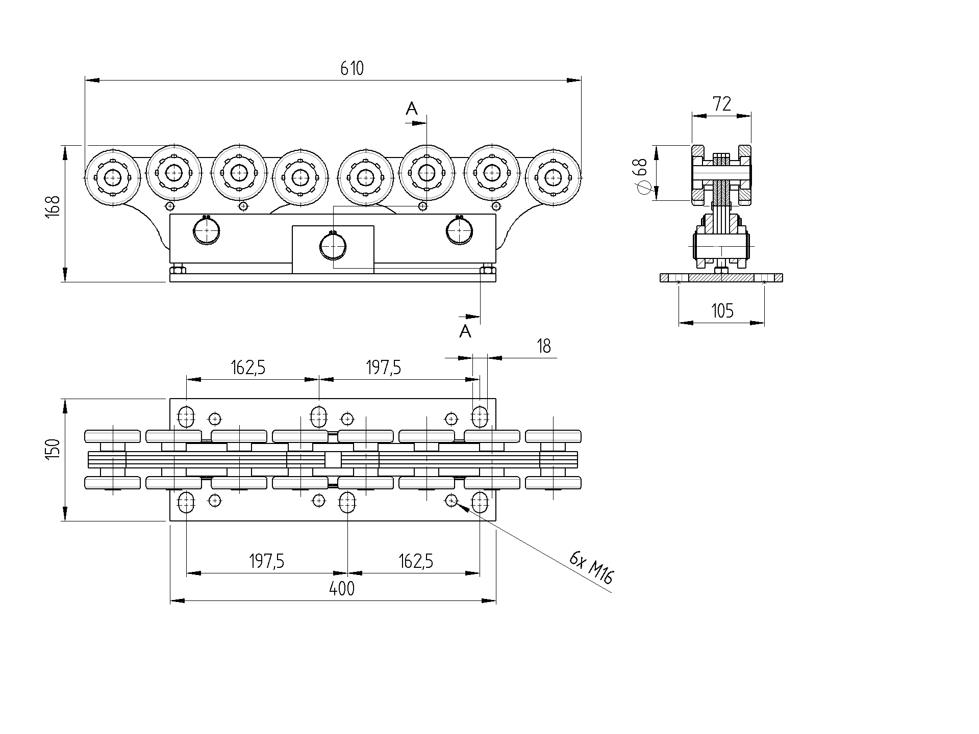 Vozík, spodní vedení Zn, profile 80x80mm H/34-8-80x80-HEAVY