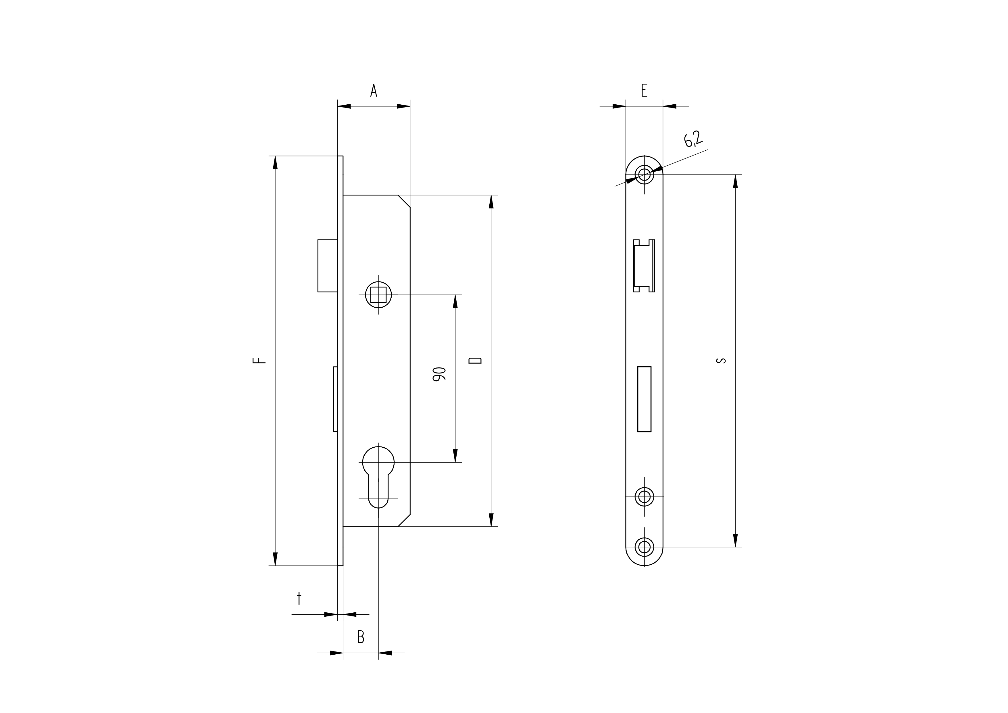 Zámková krabice k zámku B1/30-25,5x82, JP40x40 B1/52J-40x40