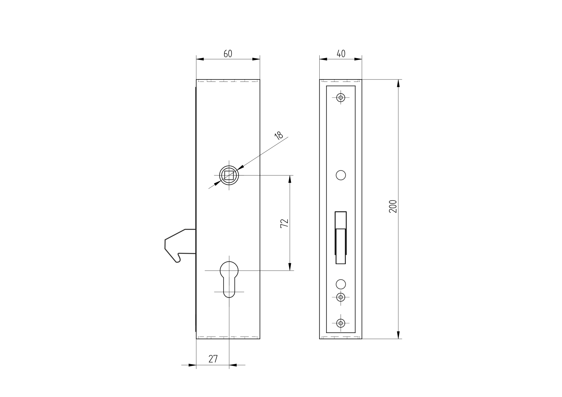 Zámek hákový pro posuvnou bránu Zn, 72x40mm H/36-40A