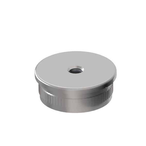 Nerezová záslepka madla plochá se závitem. Spoj (tlakový) naražením přes vroubkování.