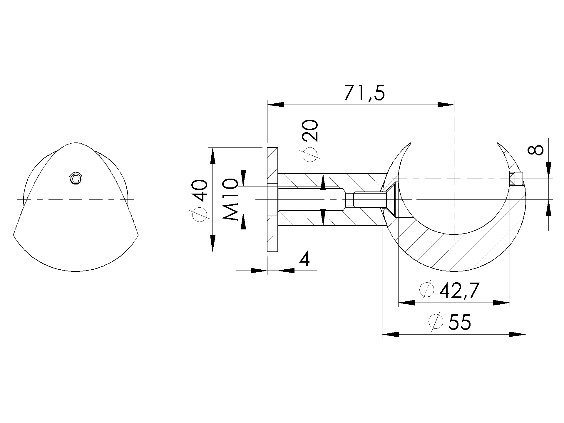 1 ksMateriálNerez AISI 304Povrchová úpravaNaturalL16Držiak madla na múrik A/0708-042-B