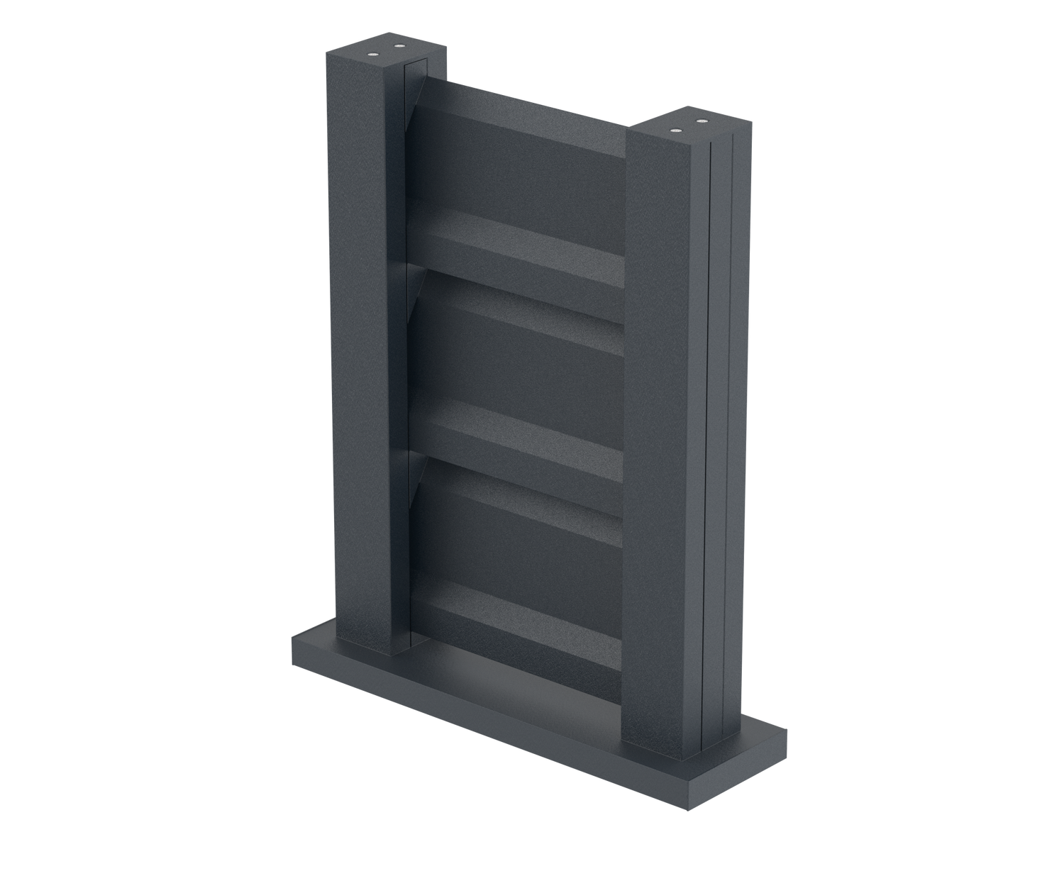 Táto vzorka plotu je vyrobená z hliníkových lamiel, čo zabezpečuje ich ľahkosť, odolnosť voči poveternostným vplyvom a dlhú životnosť. Rozmery vzorky sú 0,3 m × 0,4 m, čo umožňuje jednoduchú manipuláciu a prehľadnú prezentáciu výrobkov. Vzorka obsahuje stĺpiky FG/P50×60. Lamely sú rovnomerne rozmiestnené a môžu byť dostupné v rôznych prevedeniach, farbách a povrchových úpravách.