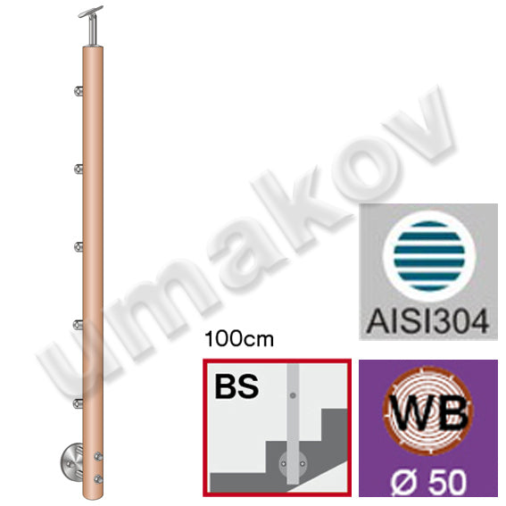 Stĺpik BUK (BEECH) D50mm, 5xd12mm, H1000, BK-Sch